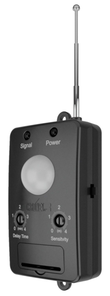 - Wireless transmitter that automatically triggers compatible foggers with motion activation