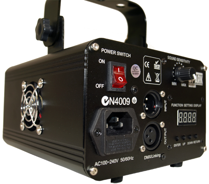 AVE’s Eclipse Spark Laser Series, Comes in three different and vibrant colors BLUE, GREEN and PINK. The Lasers are powered at a massive 1000 mW each with an amazing display of over 200 Beam patterns, animations and effects, the Spark Range is an awesome Single color Laser series that would be ideal for any Mobile DJ set-up, Link all three together to have a color array. The Eclipse Spark’s are DMX compatible and run stand alone in both Auto and Sound Activation modes.