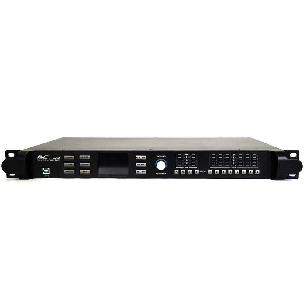 The AVE Digital Audio Processor represents the pinnacle of professional audio processing technology, delivering studio-grade sound optimization for live performances, conferences, and entertainment venues with powerful 32-bit DSP processing and 96KHz sampling rate that ensures pristine audio quality meeting the demands of professional sound engineers and performers alike. Featuring cutting-edge TI OMAP-L138 high-performance DSP technology that provides exceptional computing power of up to 3648 MIPS, the system utilizes 32-bit ADC and 24-bit DAC conversion for superior audio fidelity, achieves a dynamic range exceeding 112dB with THD+N of less than 0.002%, and maintains an impressive signal-to-noise ratio greater than 112dB, making it ideal for the most demanding professional applications. Each input and output channel features a comprehensive 16-band parametric equalizer with six equalization types including peaking, notch, all-pass filters, and shelf filters, along with HPF and LPF filters offering multiple slope options from 6dB to 48dB per octave in Butterworth, Bessel, and Linkwitz-Riley configurations, independent phase control, adjustable delay up to 2000ms, input noise gates and compressors with full parameter control, output brick-wall limiters for absolute speaker protection, and flexible routing capabilities allowing any input to be routed to any output combination. Available in three configurations—2×4, 3×6, or 4×8 channels—the processor features a front panel with clear LCD screen displaying real-time information including scene status, CPU utilization, and IP address, dedicated function buttons providing quick access to gain, EQ, crossover, compression, limiting, and delay parameters, comprehensive LED metering for instant visual feedback, Ethernet, USB, and RS-232 interfaces for versatile control options, 128 preset scene memories for instant recall, FIR filter support with Auto EQ functionality for quick optimization, AES/EBU digital input and output connectivity, permission management for enhanced security in multi-user environments, a built-in signal generator with pink noise, white noise, and sweep functions for system optimization, professional Neutrik XLR connectors, and a universal power supply supporting 100-240V operation in a compact 1U rack-mountable chassis design.