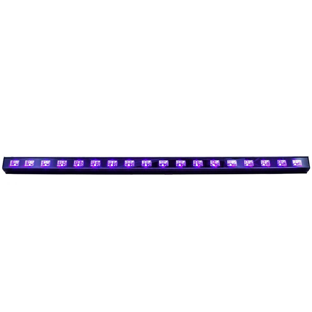 The AVE LEDBAR-UV18 LED UV Light Bar is a compact and portable 18×4W UV LED fixture that delivers intense ultraviolet lighting for stage washes, nightclubs, bowling centers, roller rinks, and other event spaces. Its parabolic reflector ensures wide, even coverage, while plug-and-play operation requires no external controller, making setup quick and hassle-free. Lightweight and low-profile, it’s easy to transport and mount, with a built-in power supply supporting 110–250 VAC for versatile use worldwide.