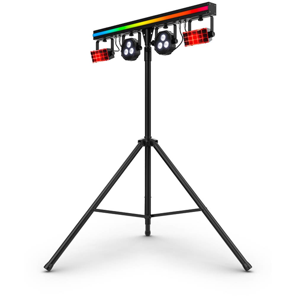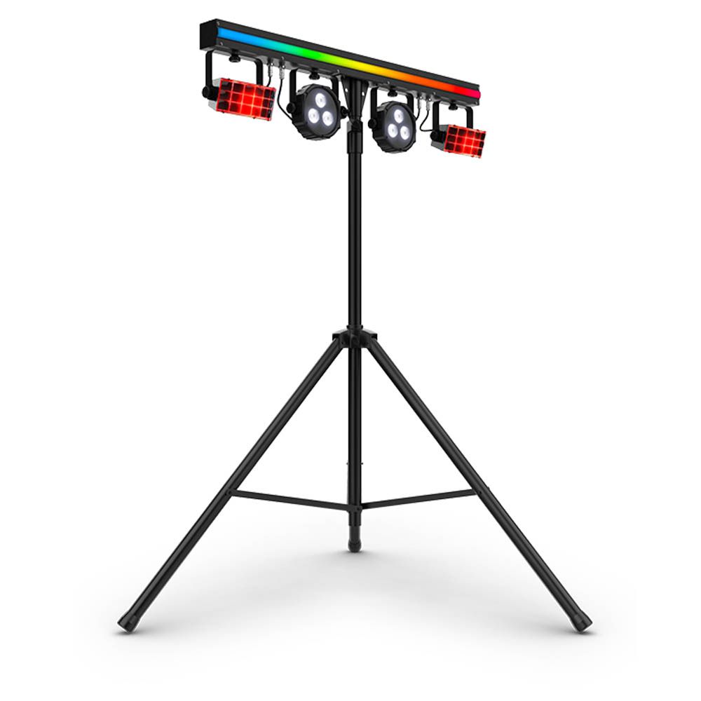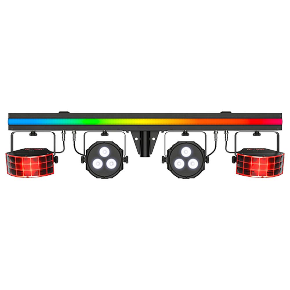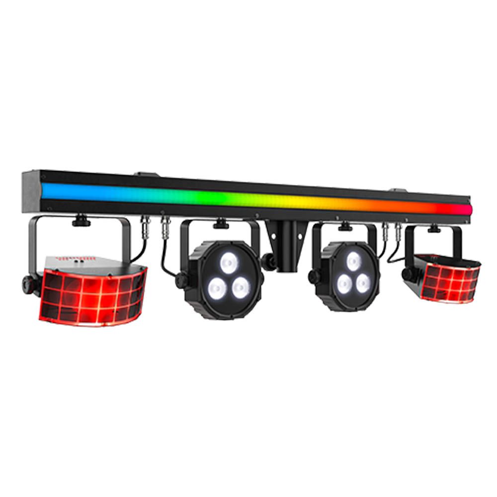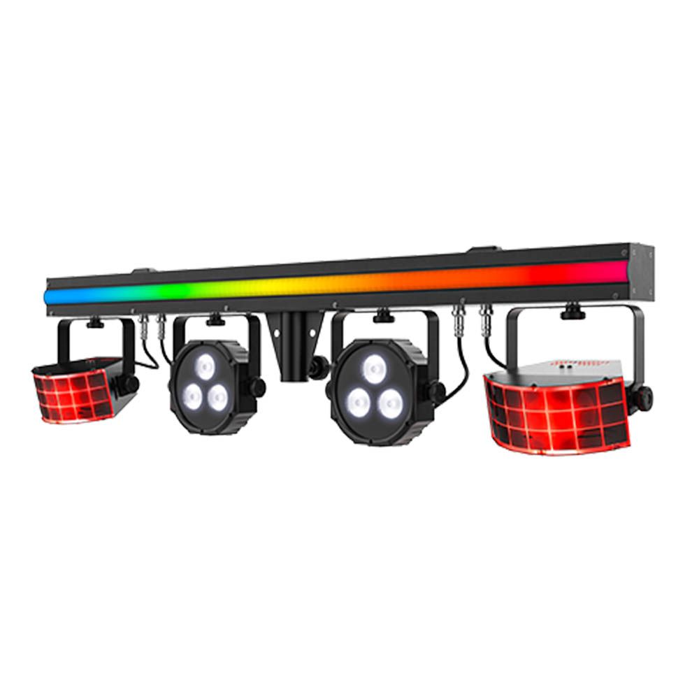 - 3-in-1 lighting combining LED derbies, LED pars, and an LED strip on a single bar
