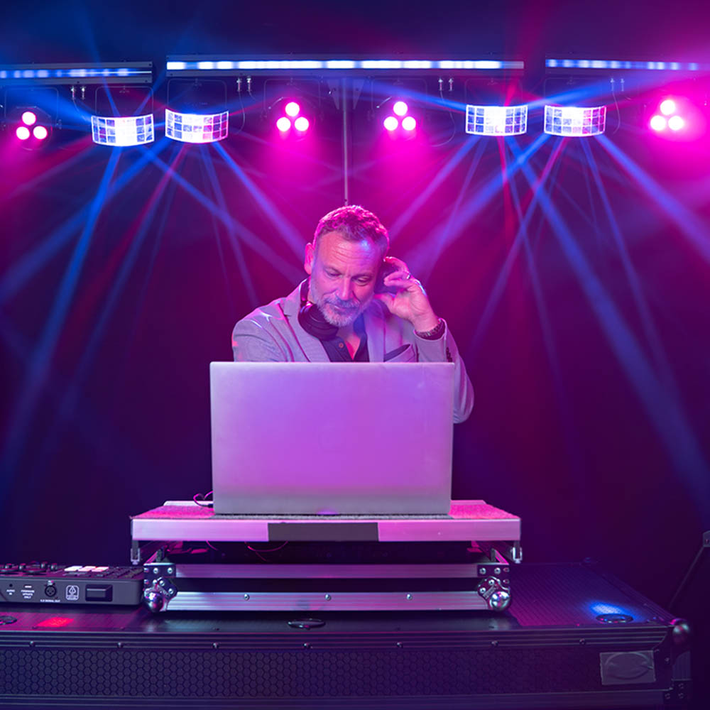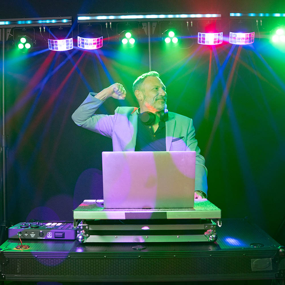- Automated, sound-activated programs combining all effects for complete shows