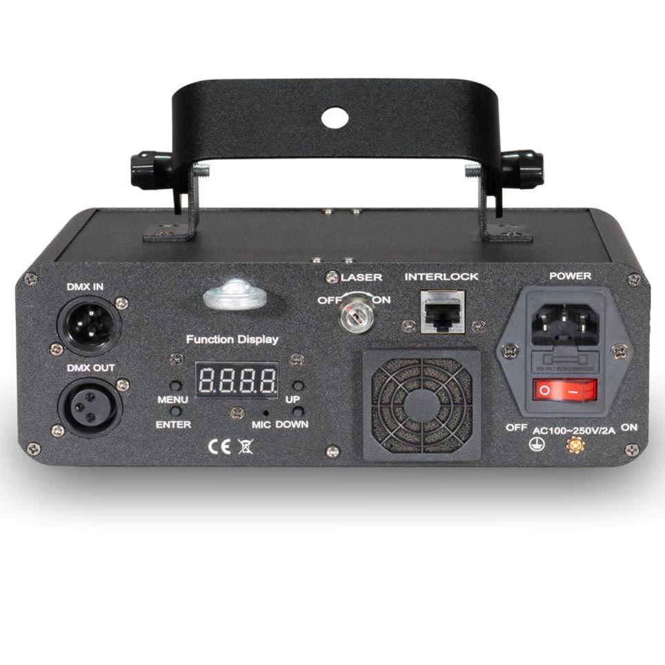 The Laserworld EL-400RGB S is a compact yet dynamic 400 mW RGB laser projector designed for DJs, bars, and small events. Combining 650 nm red, 532 nm green, and 445 nm blue diodes, it produces seven brilliant colours, including a crisp bright white. With a beam diameter of approximately 3 mm and a low 2 mrad divergence, the unit projects sharp aerial effects such as tunnels, waves, and sheets that remain visible across busy dance floors. Control flexibility makes it suitable for both beginners and professionals. Users can choose from automatic plug-and-play operation, beat-sensitive sound-to-light mode with an adjustable microphone, or integrate it into larger lighting systems via 9-channel DMX. The 15 kpps scanners ensure fluid graphics and patterns without flicker. Weighing only 3 kg and housed in a rugged metal chassis, the EL-400RGB S is portable, durable, and compliant with Class 3B safety standards, featuring a keyed switch and interlock.